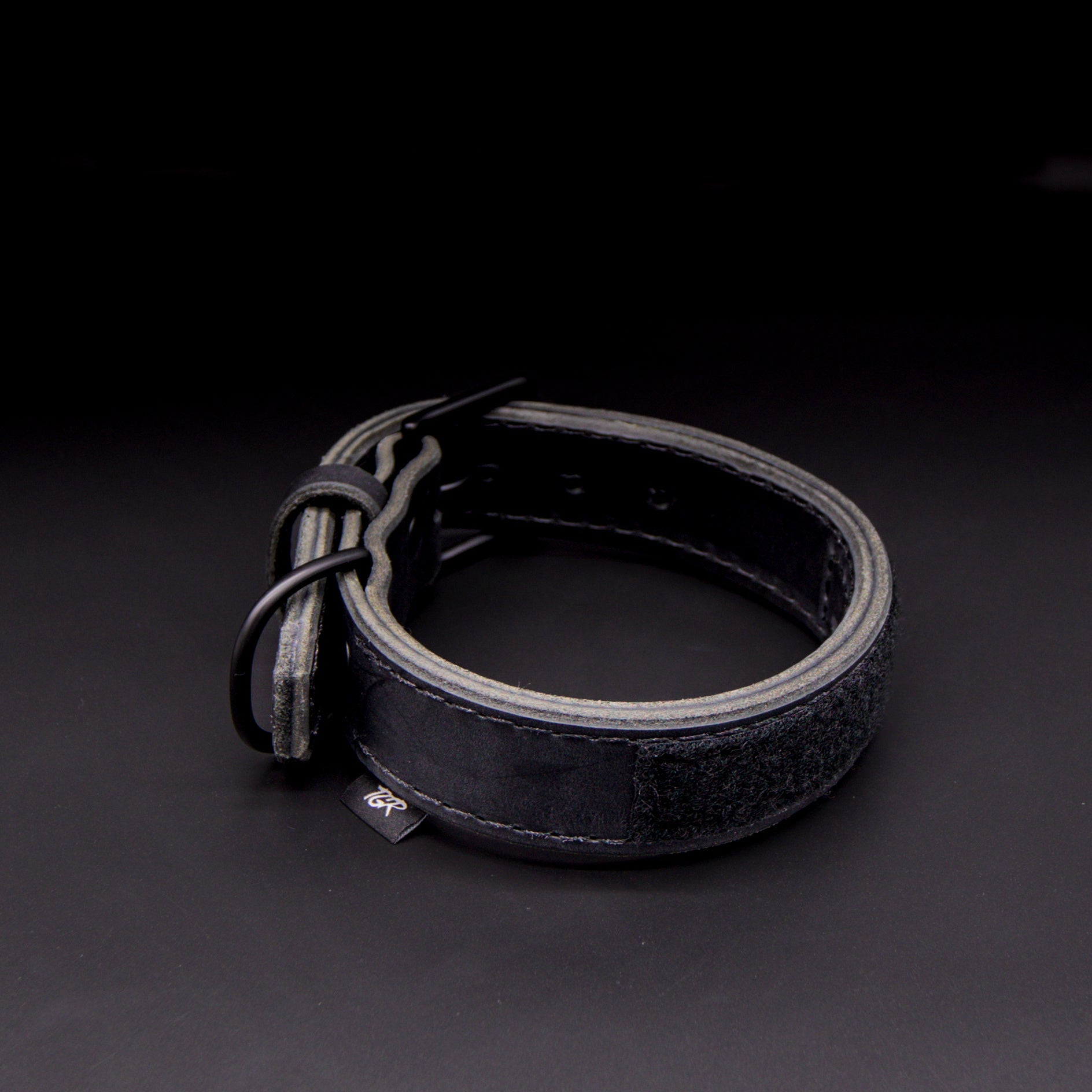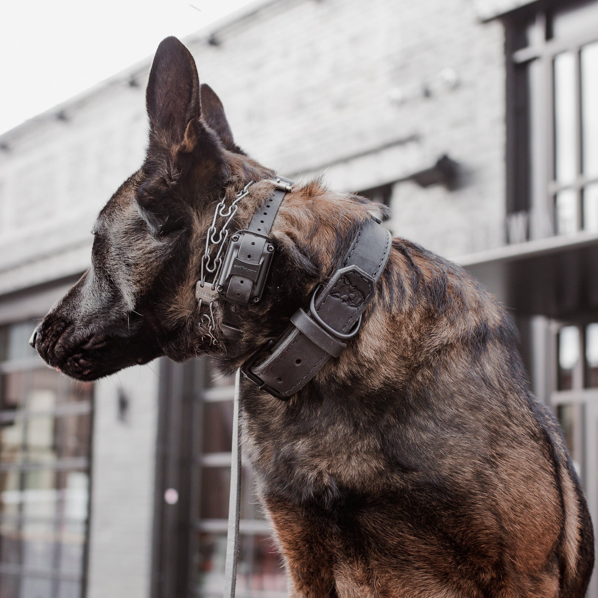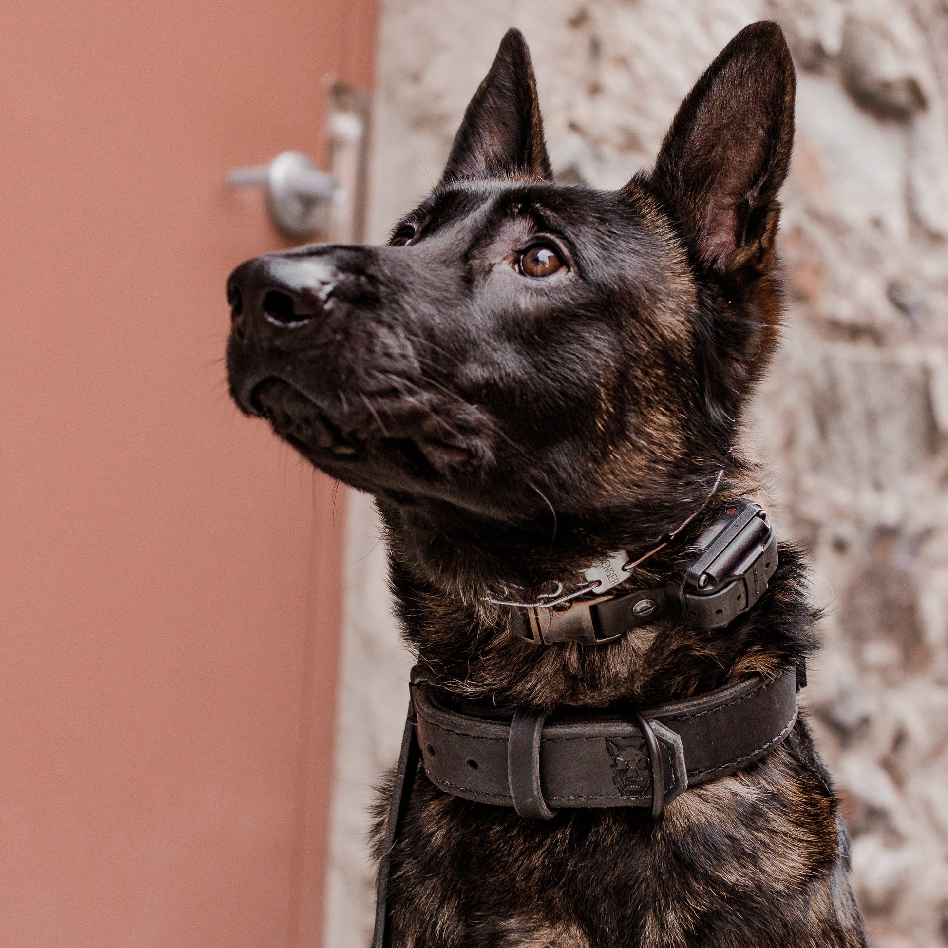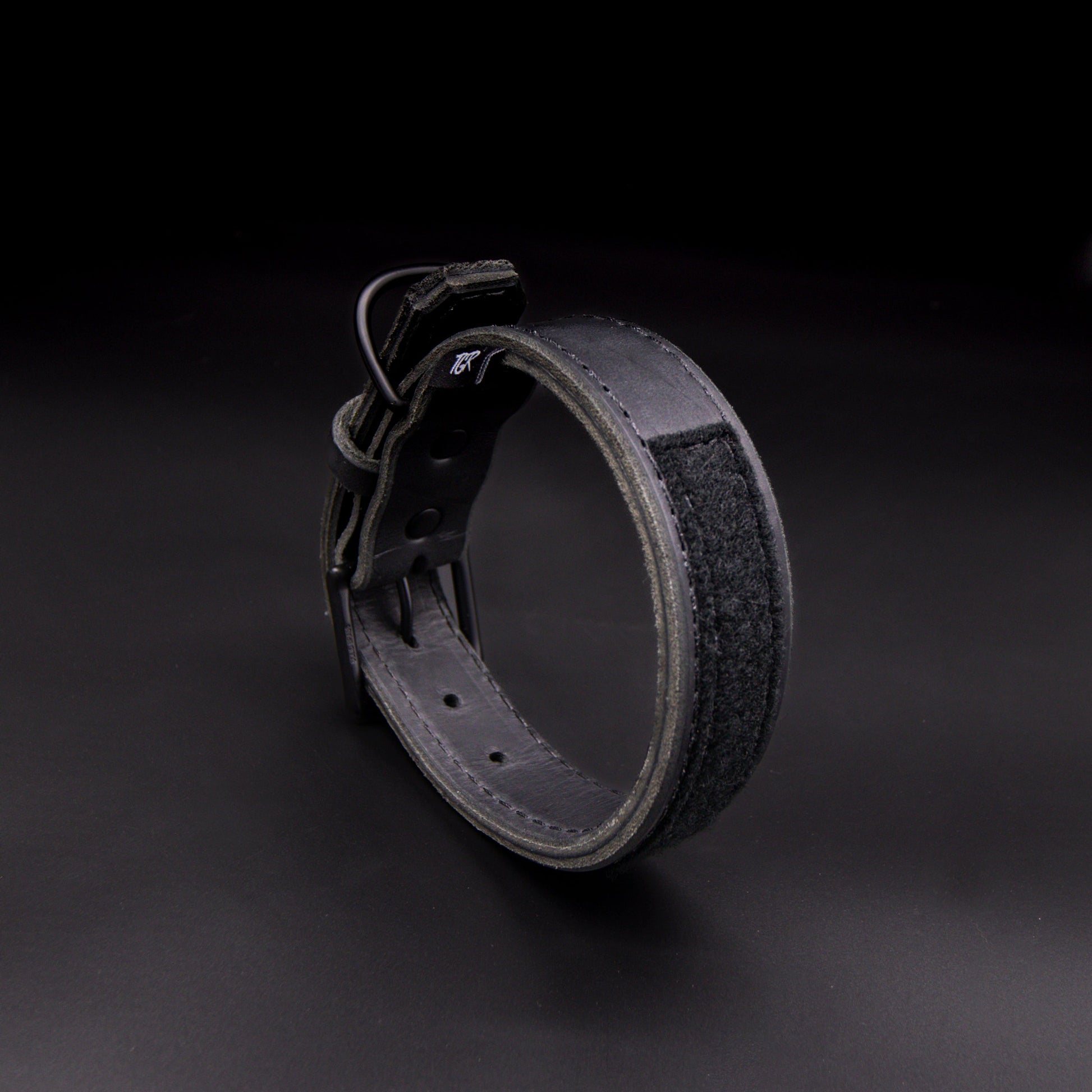 This 1.5” Dog Collar is made with the highest quality materials that we can find. The black leather is 10-11oz thick and stitched with a heavy #346 nylon thread. This collar is made to withstand anything, it is one of the highest quality and strongest collars that you can buy. That being said leather does not do well with water, so please remove the collar from your dog before swimming or giving them a bath.