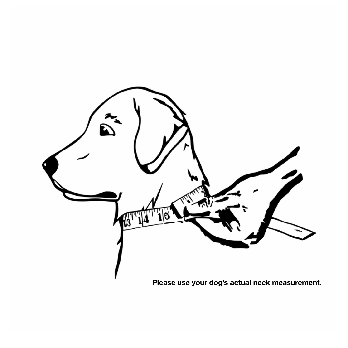 **To measure your dog's neck, please refer to the last image. The measurement provided will be the center of 5 holes all 1" apart so there will be room to adjust up or down in size. However the collar looks best when worn at the size provided so please measure twice before you submit the size.
