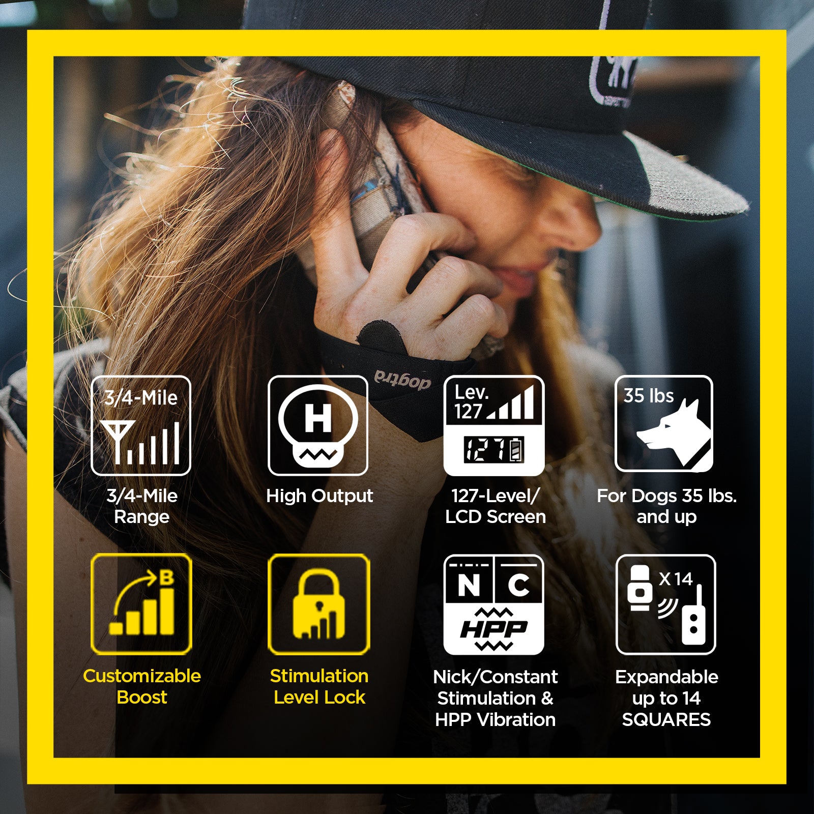 Newly updated Dogtra 1900S HANDSFREE PLUS ecollar now features Boost & Safety Level Lock. Train with the convenient HANDSFREE SQUARE, which allows dog owners to easily train without having to reach for the remote. This complete waterproof remote training e-collar system is ideal for large dogs 35 pounds and up.