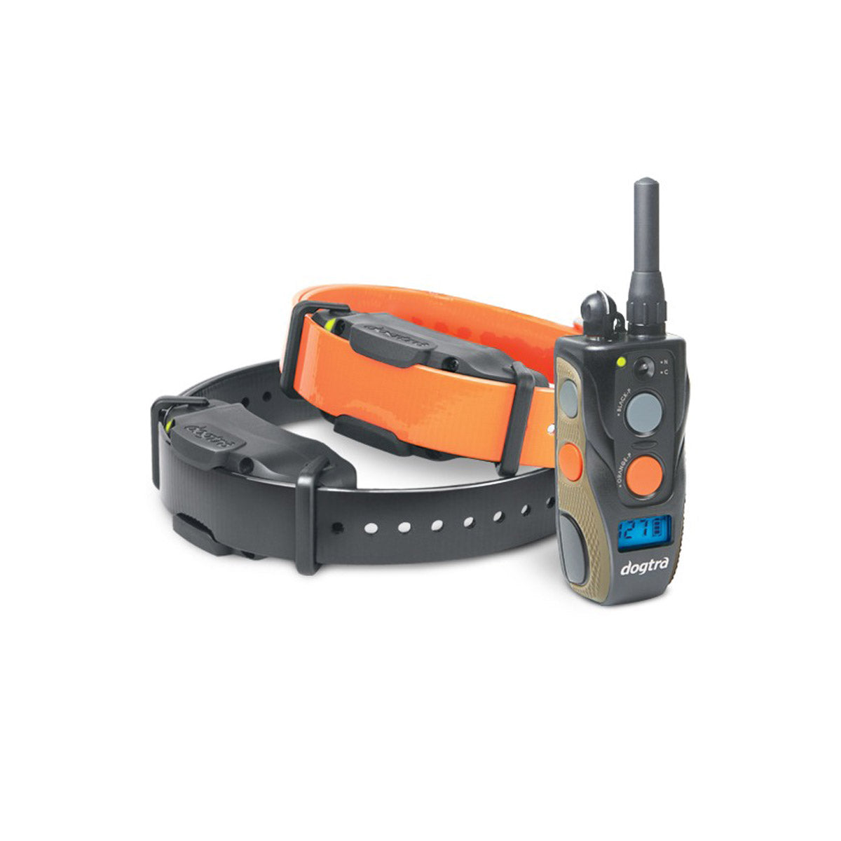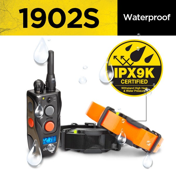 The durable 1902S e-collar features a 3/4-mile range and is fully waterproof. The receivers have a unique modern design that lets the collar strap wrap around the receiver and your dog’s neck for enhanced comfort and seamless appearance. The Dogtra 1902S receivers output low-high stimulation from 0-127 levels, a wide range of stimulation that will fit any dog’s personality from mild to most stubborn. Using a patented Rheostat Dial, the gradual and precise stimulation control is displayed on the illuminated LCD screen on the handheld transmitter. The 1902S is also available in the 1-dog system, the 1900S.