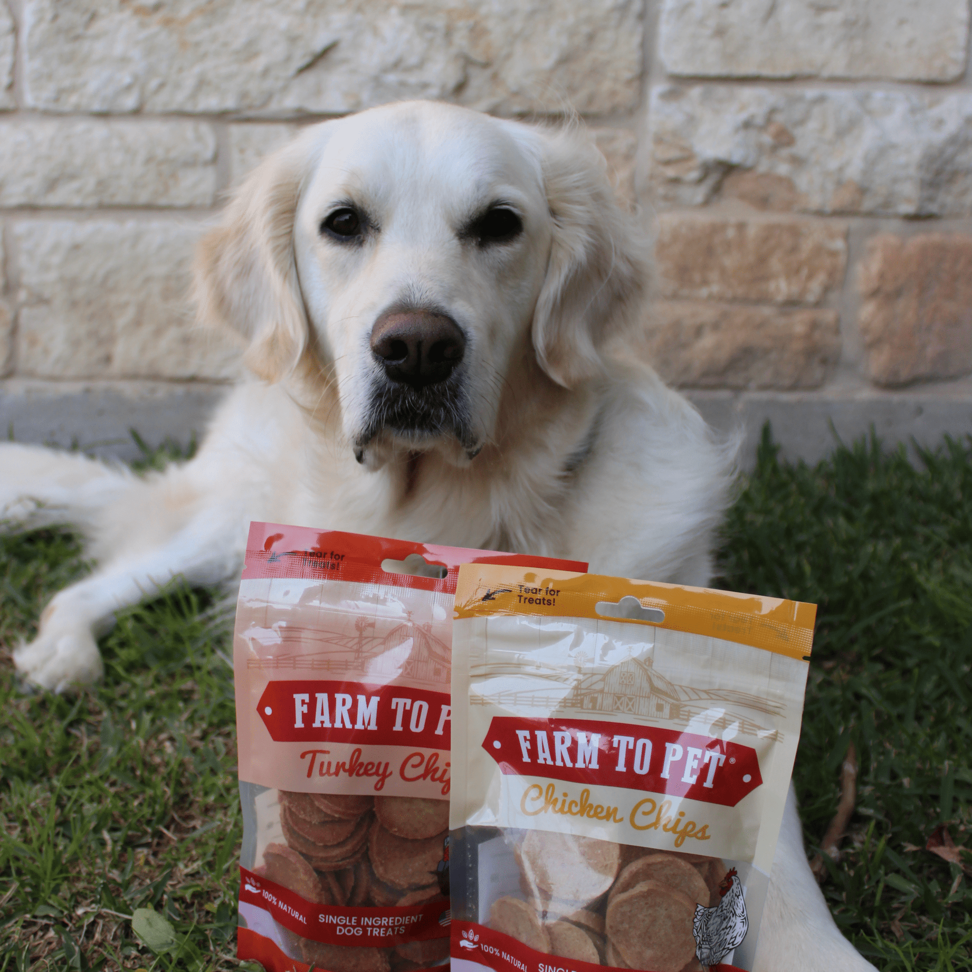 Farm to Pet does not compromise on our single-ingredient treat promise. Our Turkey Chip and Chicken Chip healthy treats for dogs contain only that - turkey or chicken. No added fillers, preservatives or artificial ingredients; just pure human-grade poultry breast that helps pets live their best lives with every crunch.