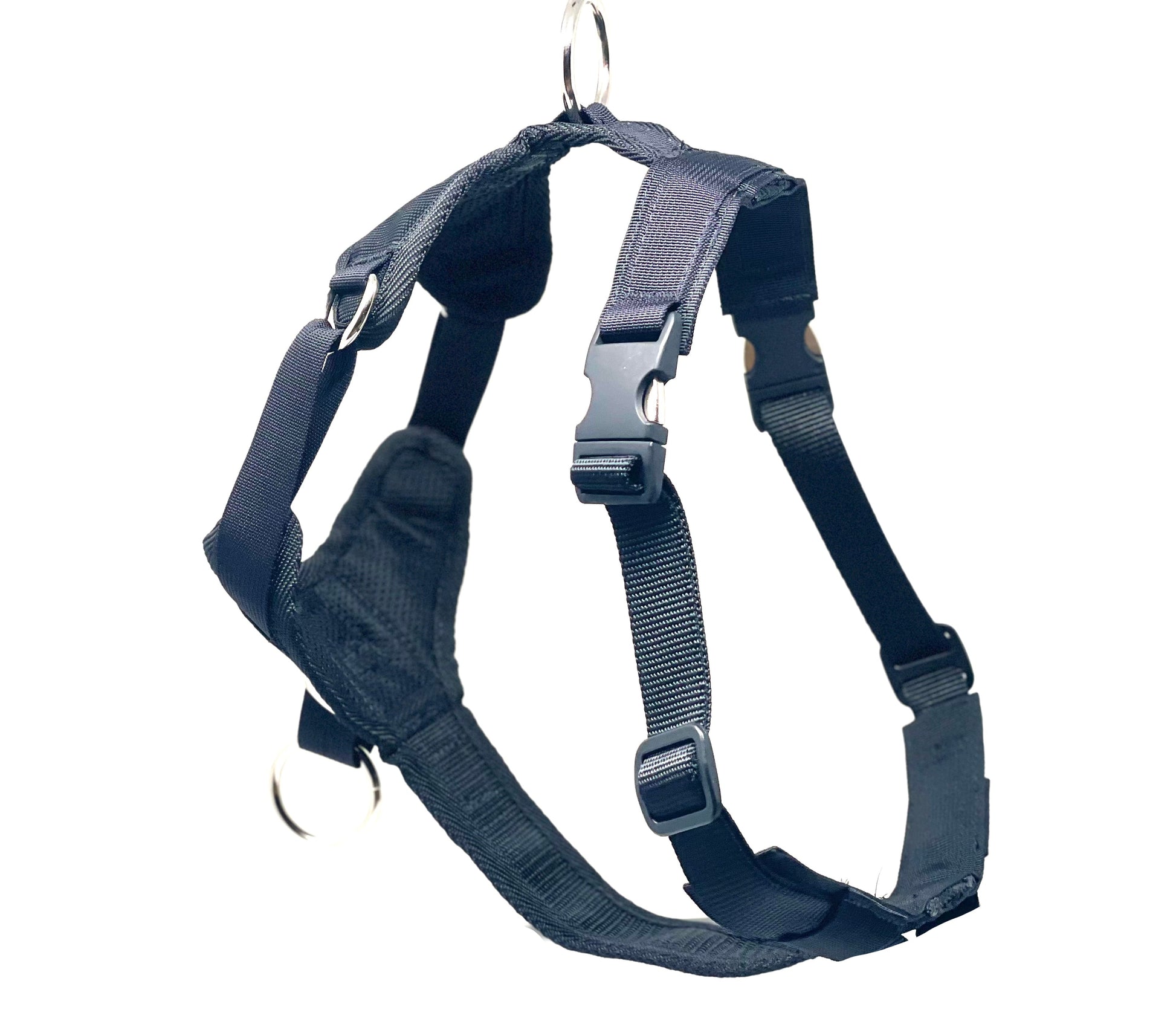 The DIRECT LIGHT is a lighter, webbing based version of our No Pull Direct Harness. It was designed to function exactly the same as our full sized harness, but narrower, thinner and overall lighter. It is perfect for smaller, narrower chested pups, or dogs that aren't as powerful or heavy. These harnesses have plastic buckles rated to 300 pounds in addition to welded steel ring attachment points.