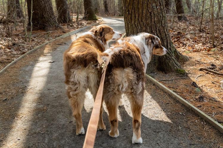 The Whiskey Dog Full Leather Leash is a staple for any dog. Choose from our favorite leather options: Black Latigo, Brown Latigo, Natural Brown Chromexcel, Natural Veg Tan, Poppy Red, Kelly Green, and Crazy Horse Buffalo.  The bolt snap, D-ring, and rivets are all made of solid brass to resist corrosion and last a lifetime. Â
