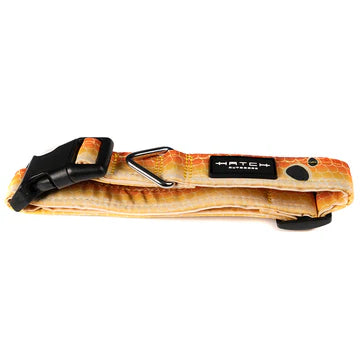 Caution: Not intended for tie out. Sizing should allow room for two fingers to fit comfortably between the item and the neck. Machine washable (use laundry bag to protect machine and collar). Air dry ONLY. Colors may vary slightly per design. Hatch Outdoors is not responsible for the use/misuse of our products.