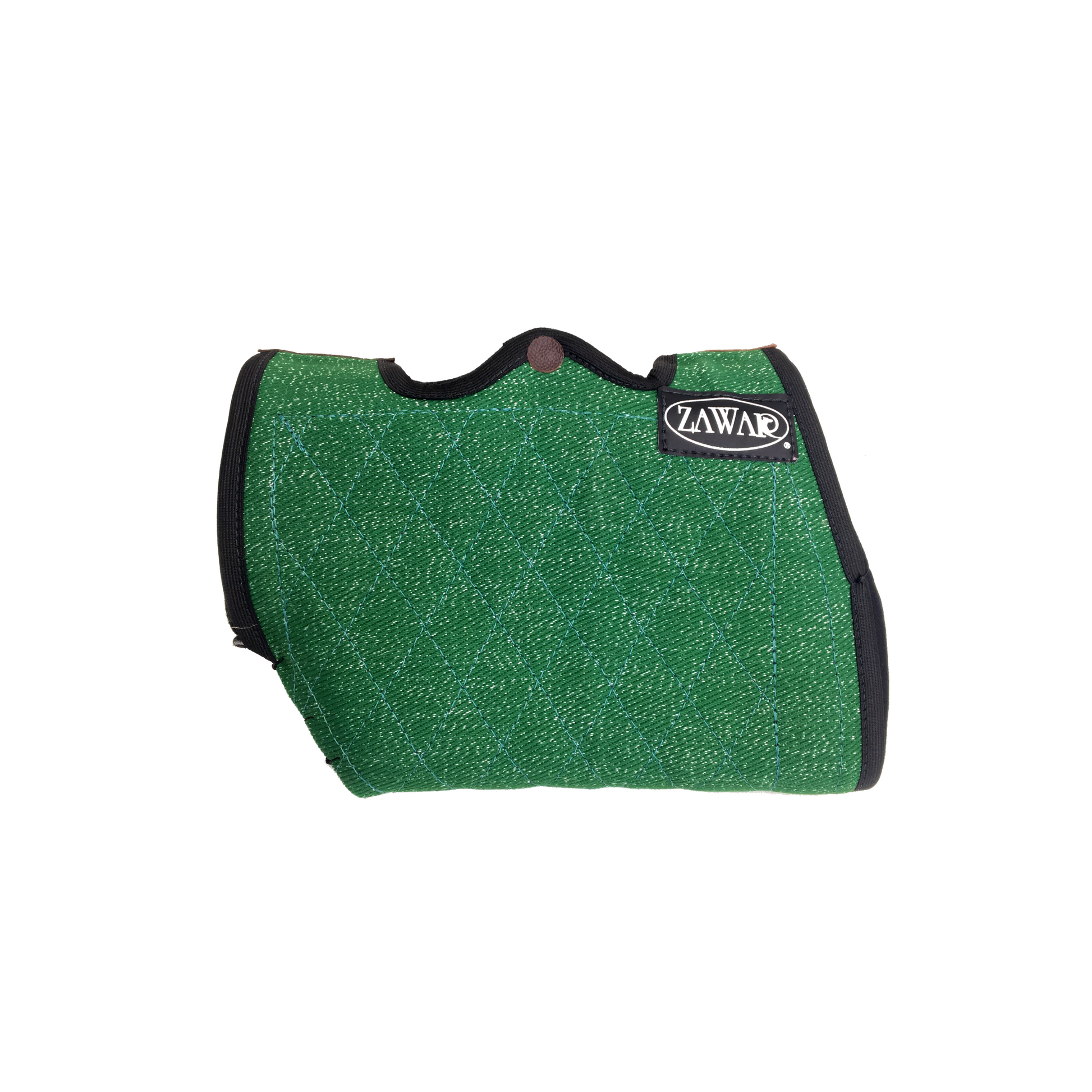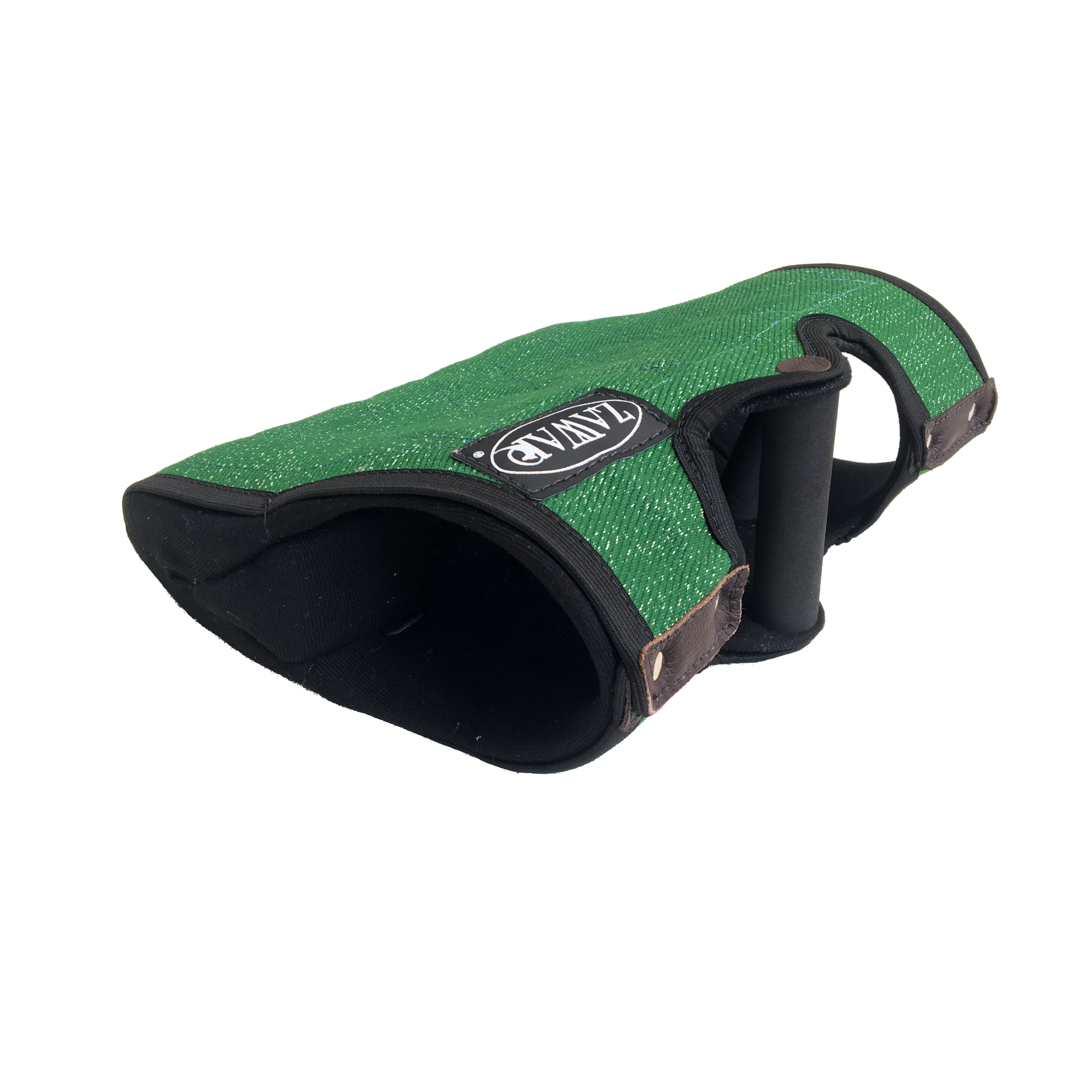 Constructed of durable bite suit fabric, this High Density Half Sleeve is filled with foam to provide a comfortable and ergonomic area for the dog to bite. Its standout feature is its double-layered holders, which function like a glove or pillow.