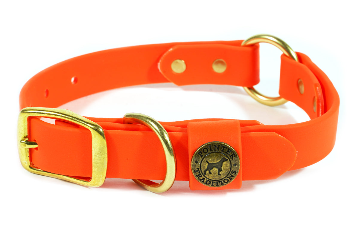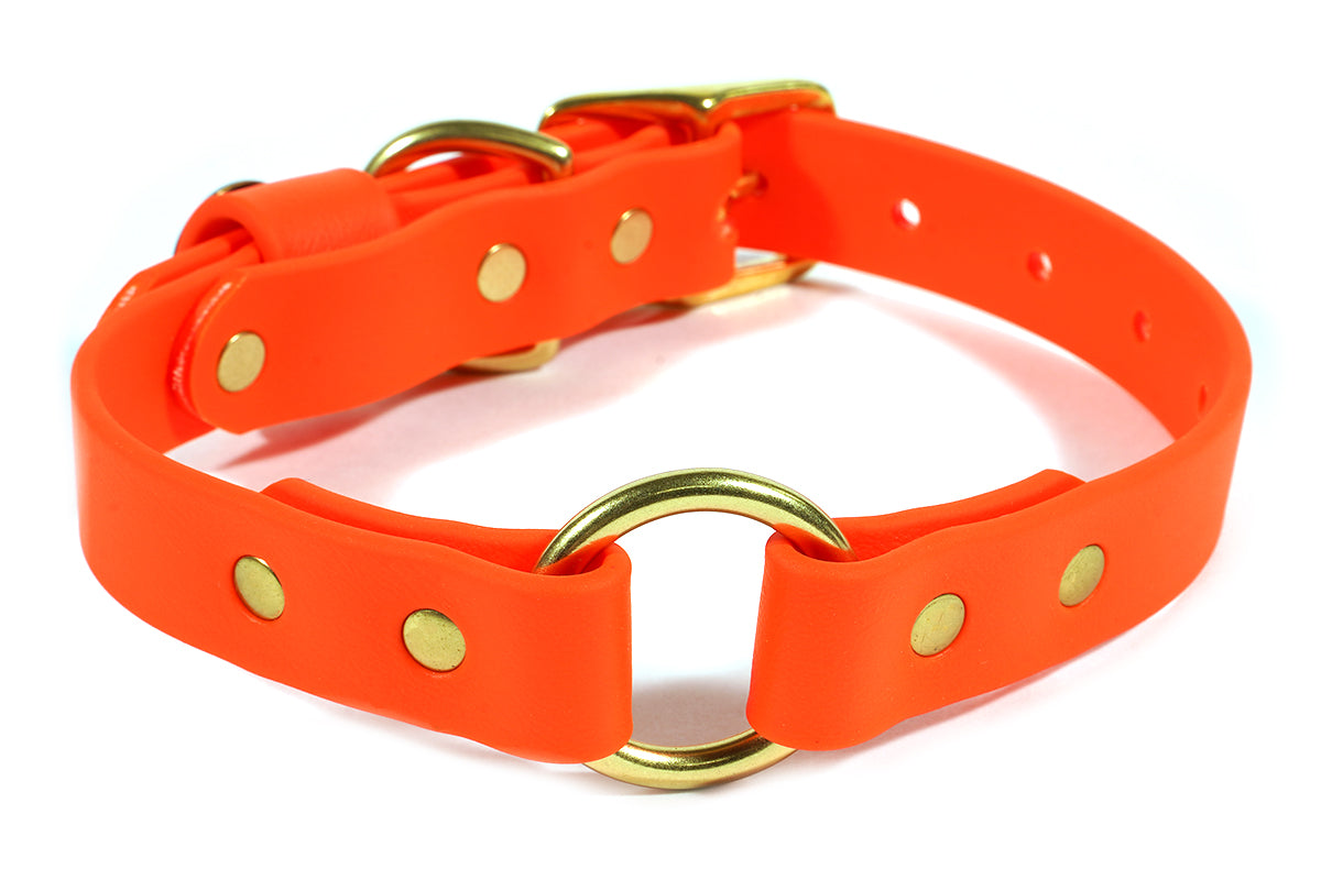 This collar is manufactured with a center ring to keep your dog safe while out in the field. The center ring allows the collar to flex more than a regular collar, allowing your dog to free itself from fences, branches, or other potential hazards.