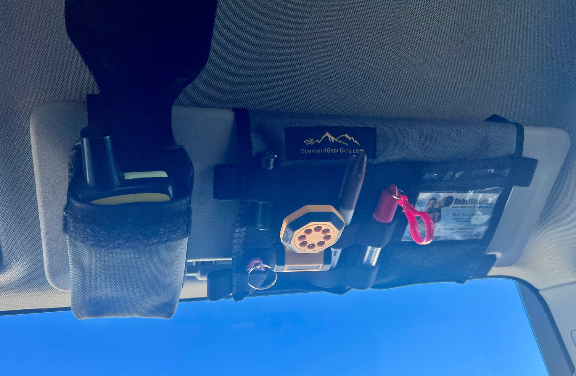 This versatile organizer attaches securely to your sun visor, providing a convenient and accessible location for your essential gear.