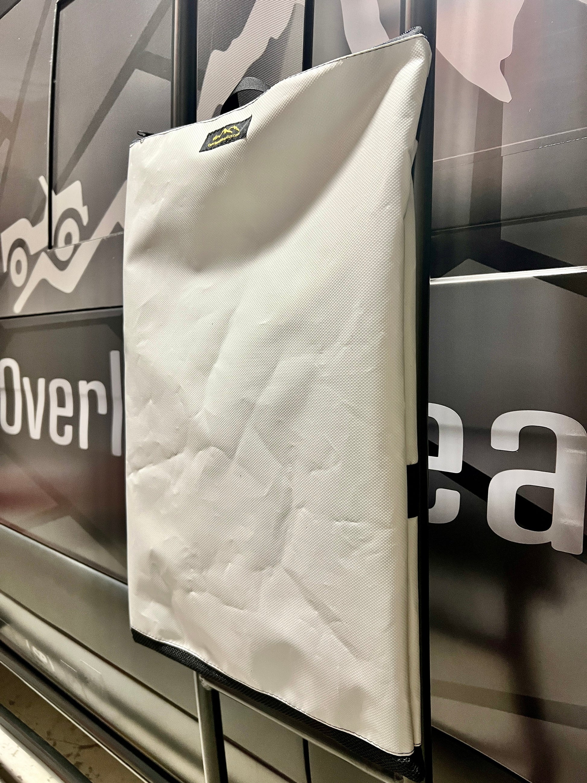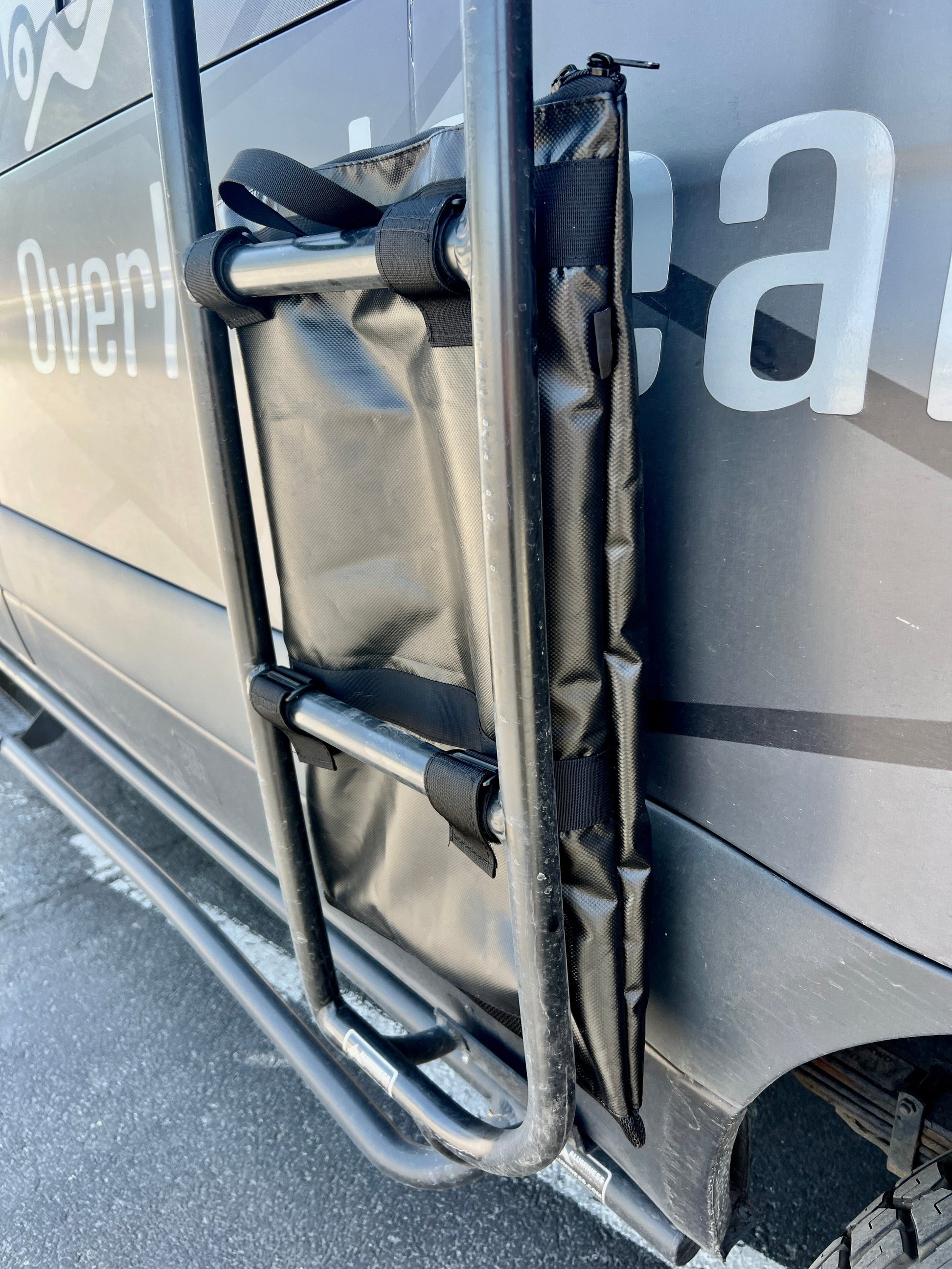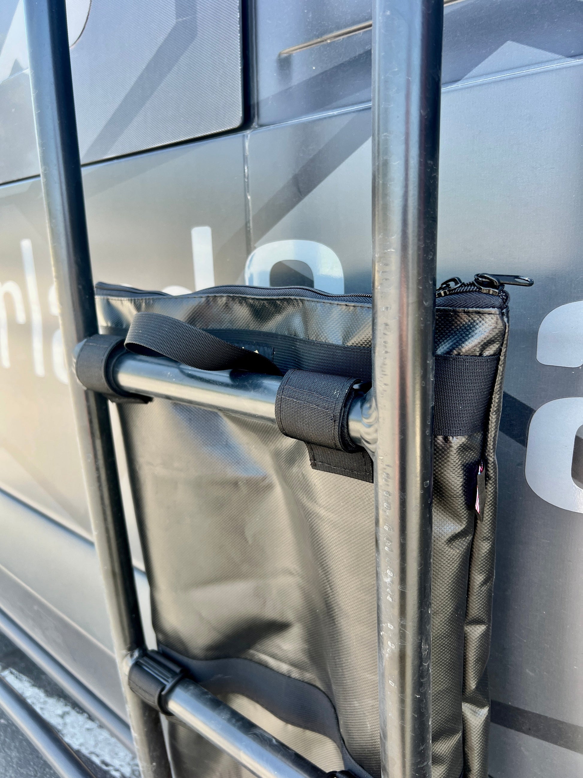 Disclaimer: Do NOT drive with bag mounted on the Outside of ladder, Flip it to the inside of the ladder. Also peaceful not to overfill it with sharp heavy object, you do not want it again the paint on the vehicle.