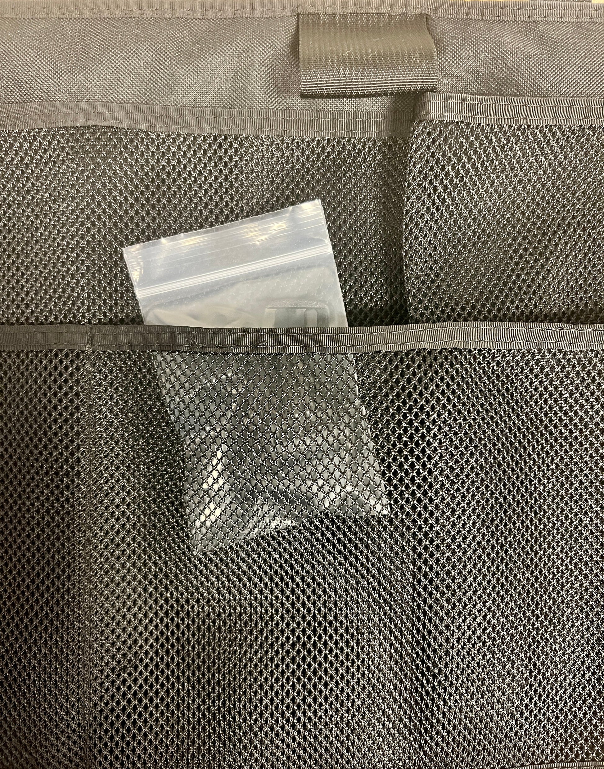 The Revel Van Rear Storage Organizer is the perfect solution for you! This organizer has eight mesh pockets that can hold everything from hydro flask water bottles to clothes, books, and flashlights. It also has a webbing sleeve in the back that can be used to feed a rod through or clip right into your roll-off screen straps, while still having your privacy screen up or down.