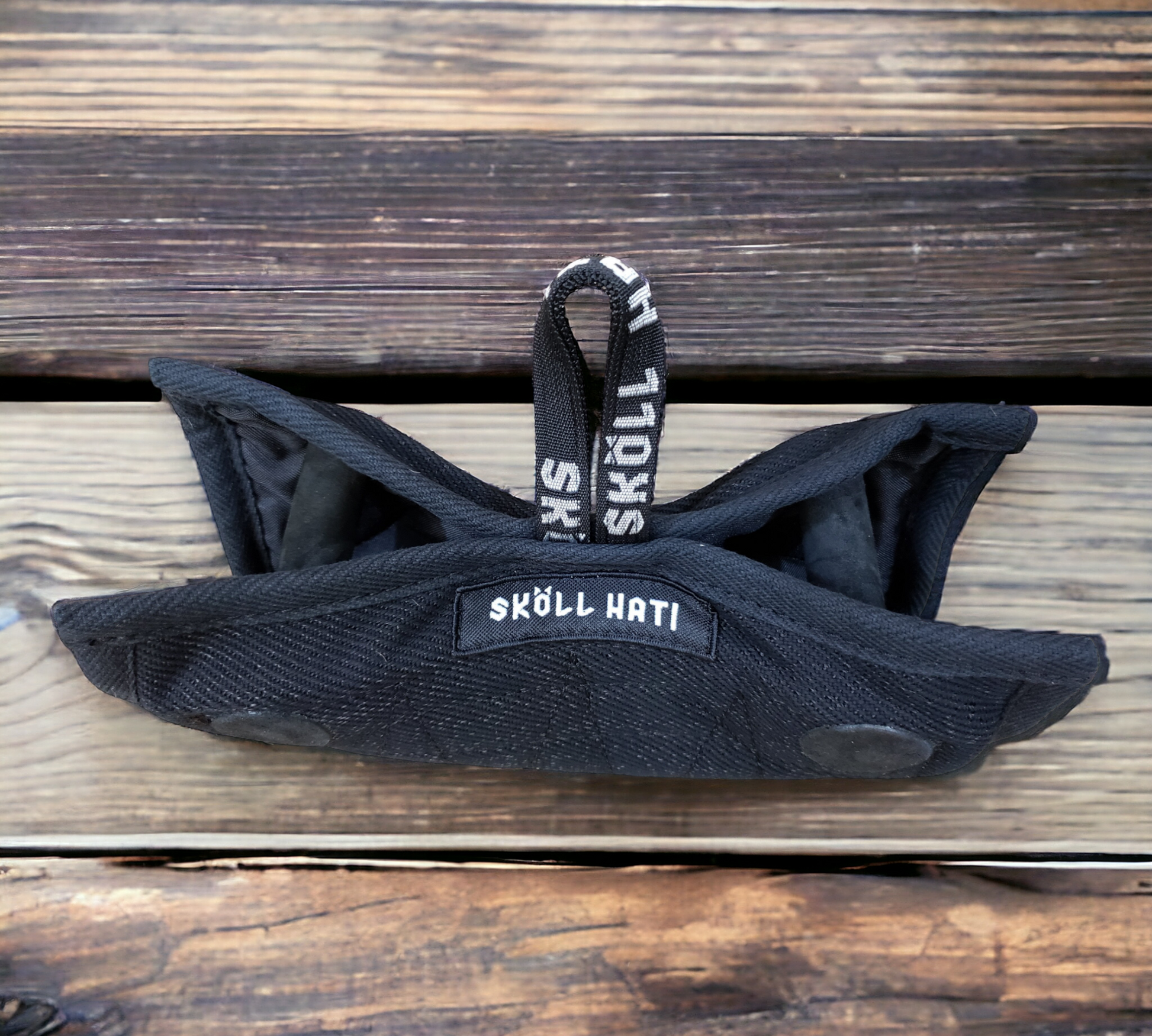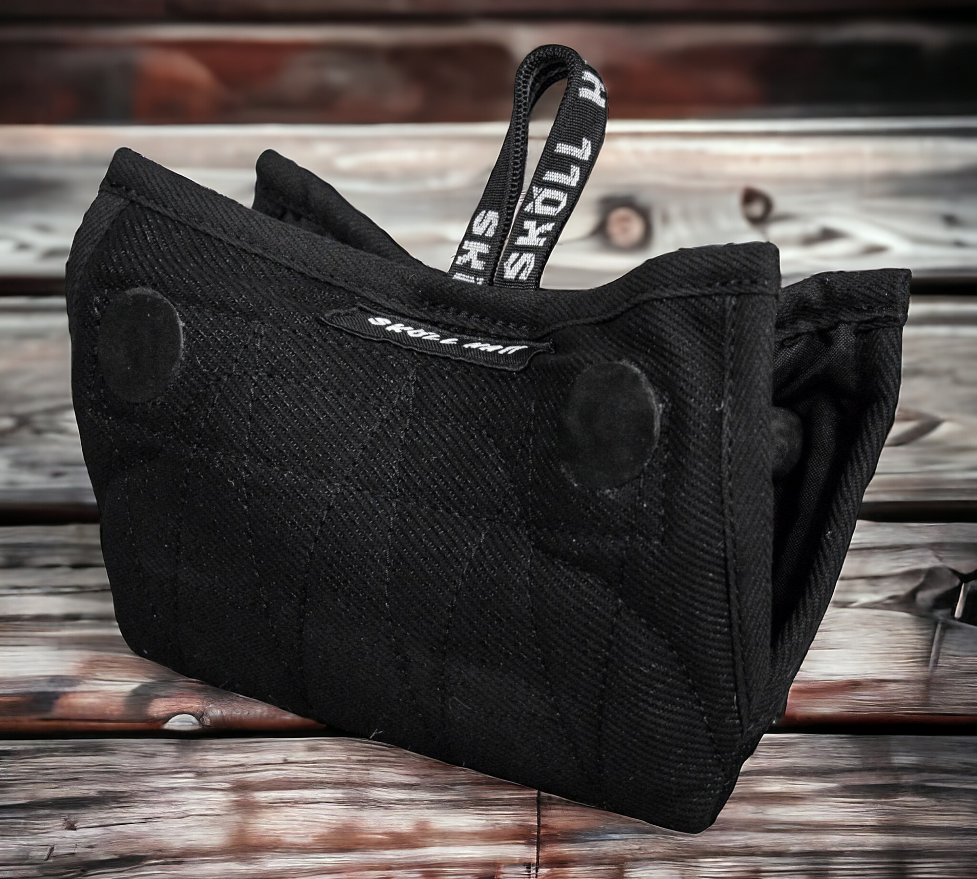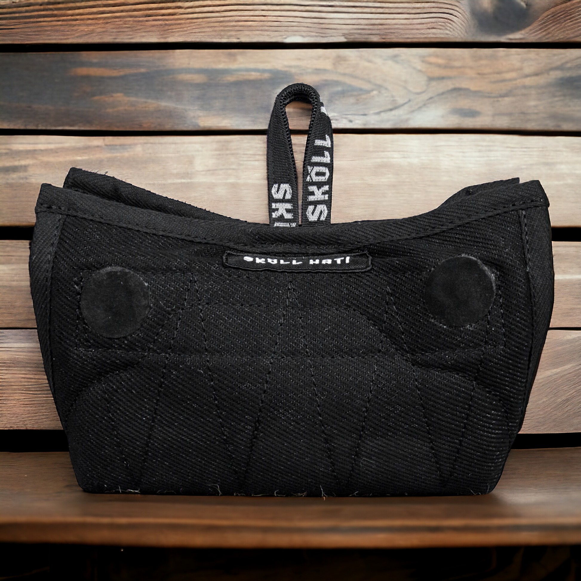 Bite wedge made out of nylon/cotton "bitesuit" material with 2 handles.