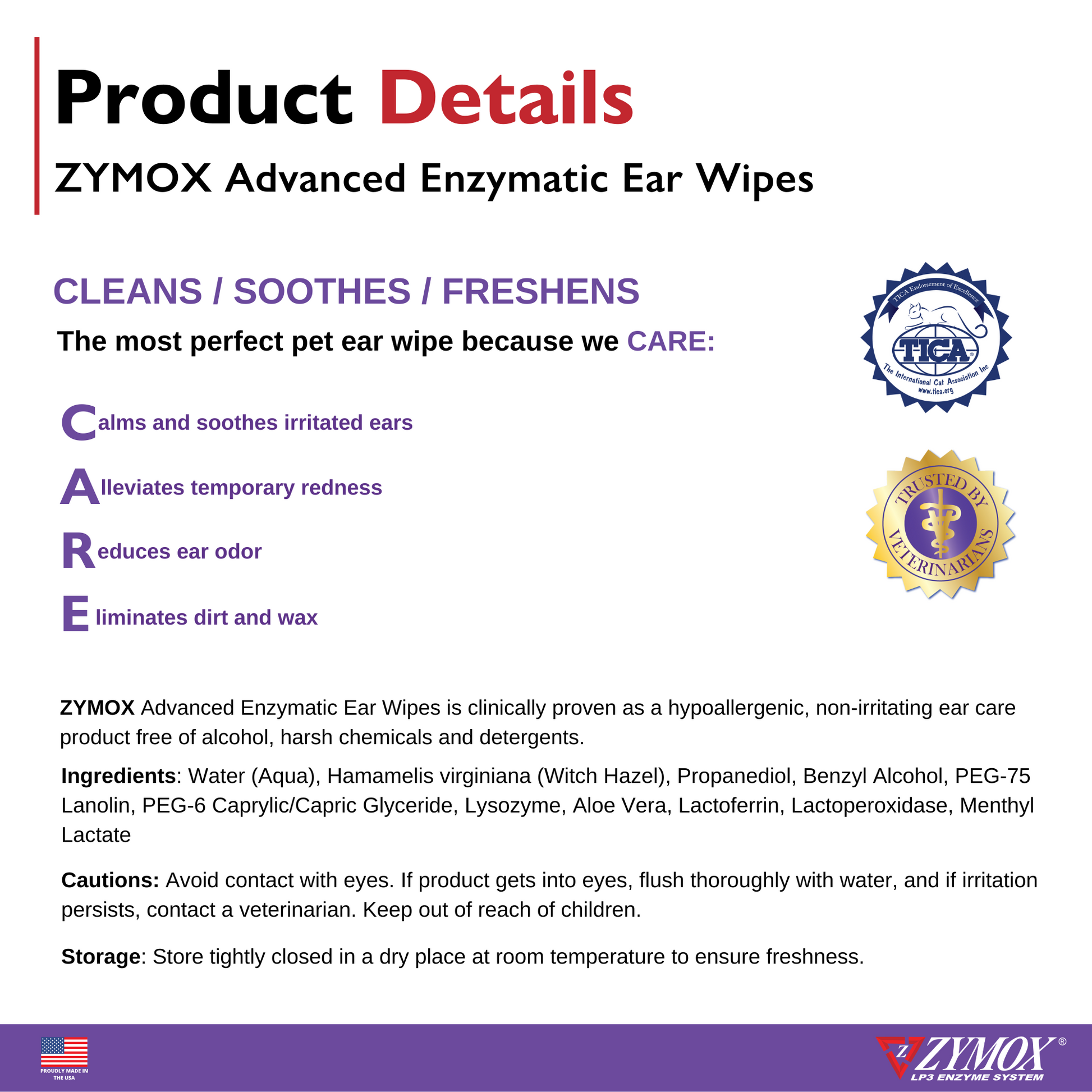 - Use as Needed: Use Zymox Advanced Enzymatic Ear Wipes as needed to clean your pet's ears. You can use them regularly for maintenance or as recommended by your veterinarian for specific ear care needs.